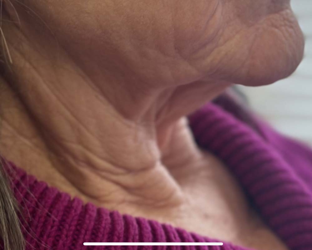 Goal: Patient felt very self-conscious about the excess sagging skin on her neck. She felt that it made her look much older than she should. Her goal was to look younger overall and reduce the sagging skin as much as possible.