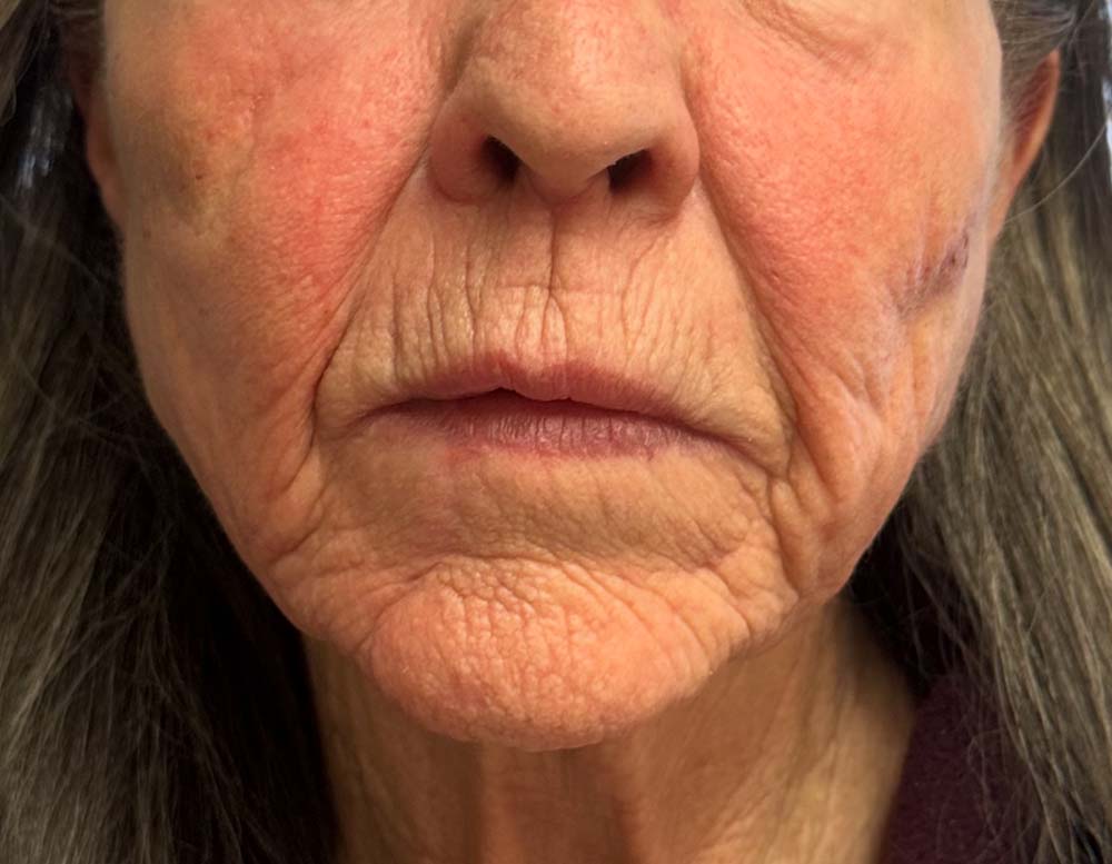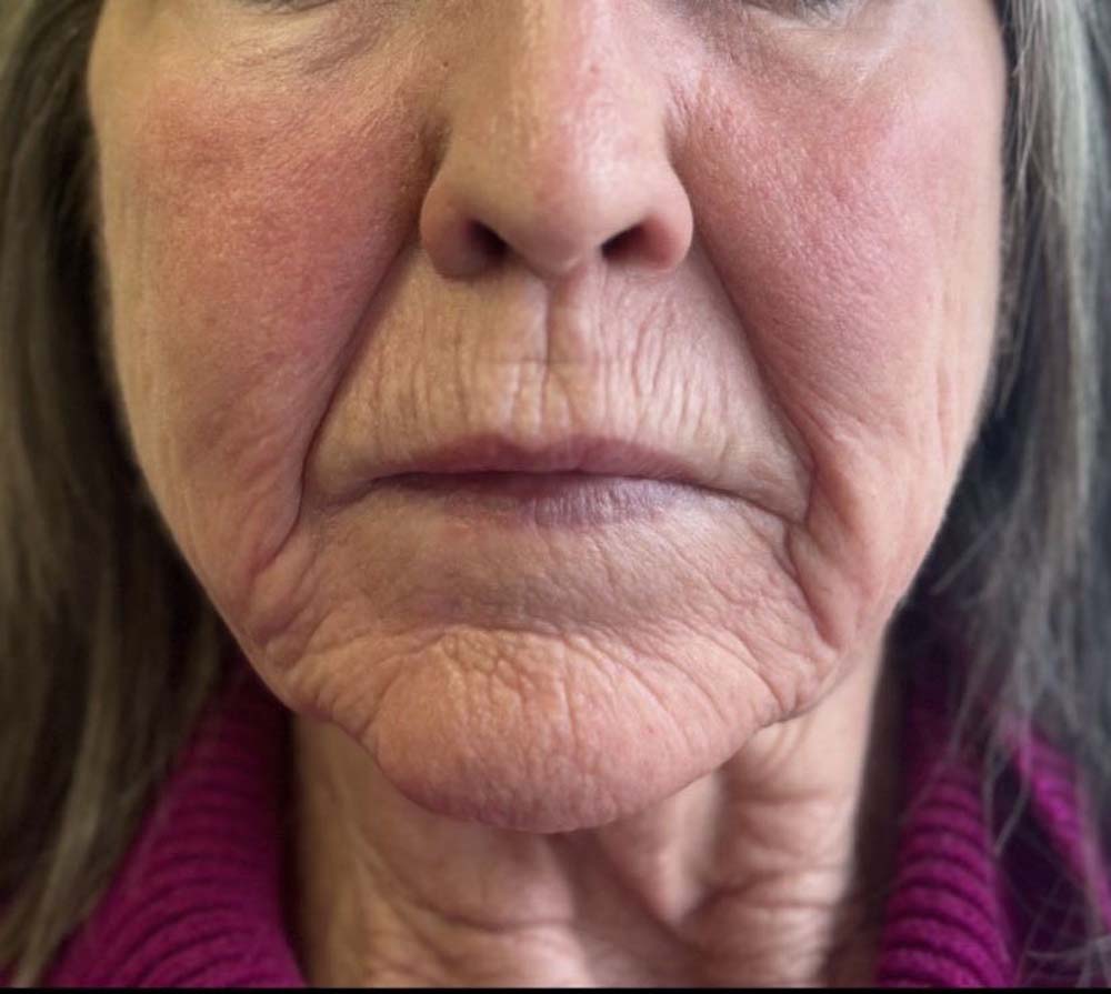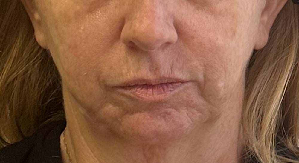 Result: Lifted and improved facial features and contours. Younger, rejuvenated lower face, smoother, more defined jawline, decreased sagging skin and decreased jowling. We utilized more than one service to achieve the results that were important to this patient.