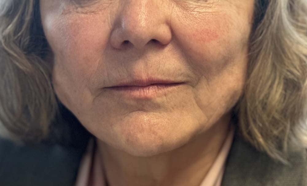 Result: We achieved a decrease in the wrinkling and sagging in the neck and softened the lines around this patient’s nose as well as giving her face a gentle, natural looking lift using a combination of the triLift™ laser facelift, PDO thread lift and liquid facelift.
