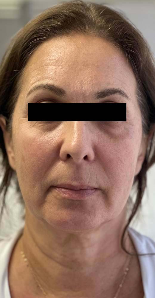 Results: To help this patient achieve her goals, we used PDO Threads Facelift and triLift™ Laser Facelift combination non-surgical facelift. You can see from this front view that the facial structure improvement resulted in this patient looking much younger.
